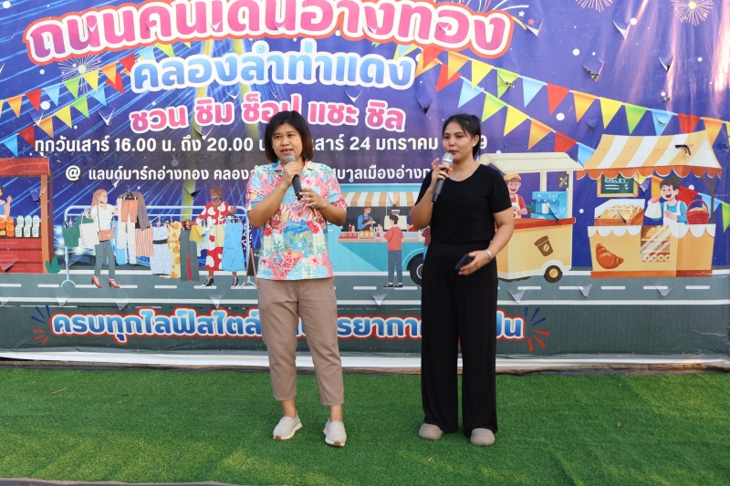 วันเสาร์ที่ 4 เมษายน 2569 เวลา 17.00 น.นายเตือนใจ ทรงไตร นายกเทศมนตรีเมืองอ่างทอง มอบหมายให้นายทนงศักดิ์ ศรีวิเชียร รองนายกเทศมนตรีเมืองอ่างทอง และกองสวัสดิการฯ ลงพื้นที่เยี่ยมชมร้านค้า ให้กำลังใจพ่อค้า แม่ค้า ภายใน"ถนนคนเดินอ่างทอง คลองลำท่าแดง" โดยสัปดาห์นี้มีพี่น้องประชนชน และชาวต่างชาติ มาเที่ยวชมถนนคนเดินอ่างทอง คลองลำท่าแดง เป็นจำนวนมาก ทำเอาบรรยากาศการค้าขายคึกคัก ร้านค้าบางท่านขายหมดตั้งแต่ตอนค่ำ บางร้านของที่เตรียมมาไม่พอขาย และมีชาวต่างชาติให้ความสนใจมาเที่ยวชม เพราะนอกจากร้านค้าขาย ยังมีจุดสะพานแขวนแลนด์มาร์กอ่างทองที่สวยงามให้ชมและเช็คอิน ทั้งนี้รองนายกเทศมนตรีเมืองอ่างทอง ได้ตรวจสอบสถานที่เพื่อเตรียมปรับปรุงแก้ไขเวทีกลาง และเสริมกิจกรรมเพิ่มเติม