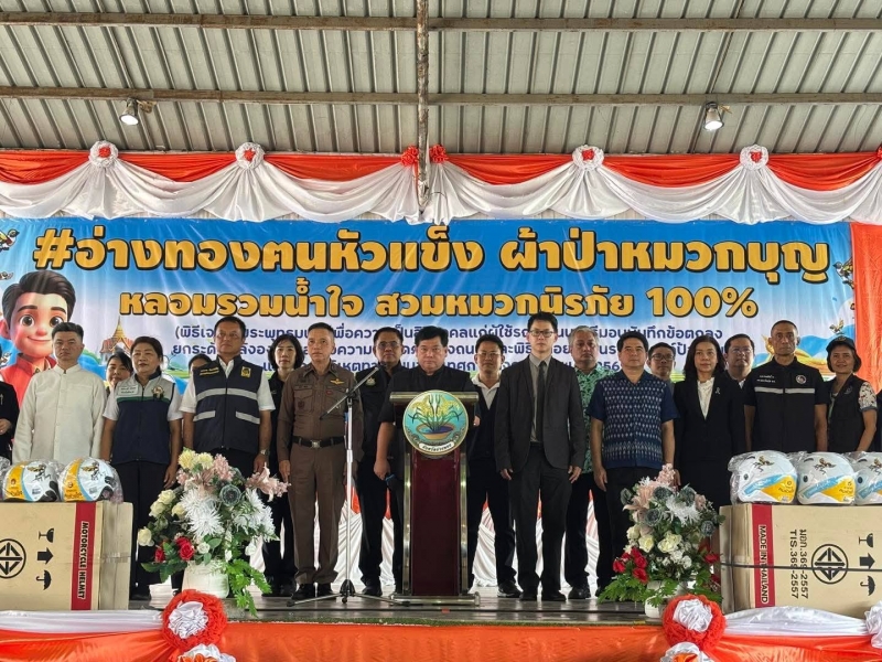มอบหมายให้นายรณชัย เสือวงษ์ ปลัดเทศบาลเมืองอ่างทอง พร้อมด้วย นางสุภาวิตา ยาแพง รองปลัดเทศบาลเมืองอ่างทอง และบุคลากรในสังกัด เข้าร่วมโครงการ “ฅนหัวแข็ง” ผ้าป่าหมวกบุญ หลอมรวมน้ำใจ สวมหมวกนิรภัย 100% เพื่อรณรงค์สร้างจิตสำนึกให้ประชาชนตระหนักถึงความสำคัญของการสวมหมวกนิรภัยในการขับขี่รถจักรยานยนต์ โดยมีนายนที มนตริวัต ผู้ว่าราชการจังหวัดอ่างทอง เป็นประธานในพิธี ณ อาคารสำนึกบ้านเกิด องค์การบริหารส่วนจังหวัดอ่างทอง ต.ป่างิ้ว อ.เมือง จ.อ่างทอง