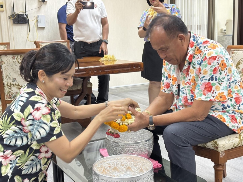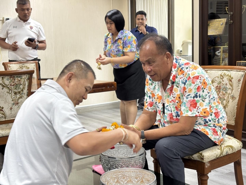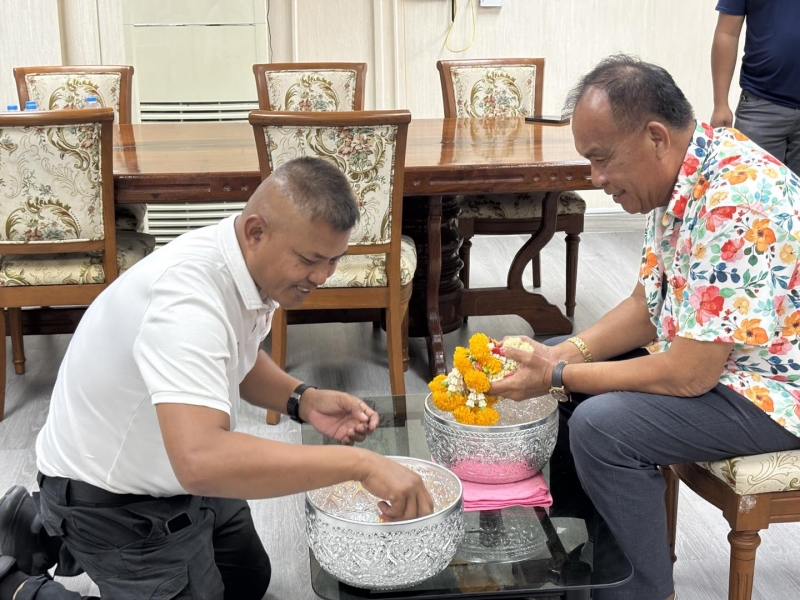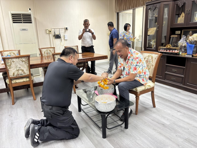 พ.ต.ท.บรรพต แก้วตา สารวัตรตรวจคนเข้าเมืองจังหวัดอ่างทอง พร้อมคณะและบุคลากรในสังกัด เข้ารดน้ำขอพรนายเตือนใจ ทรงไตร นายกเทศมนตรีเมืองอ่างทอง ณ สำนักงานเทศบาลเมืองอ่างทอง