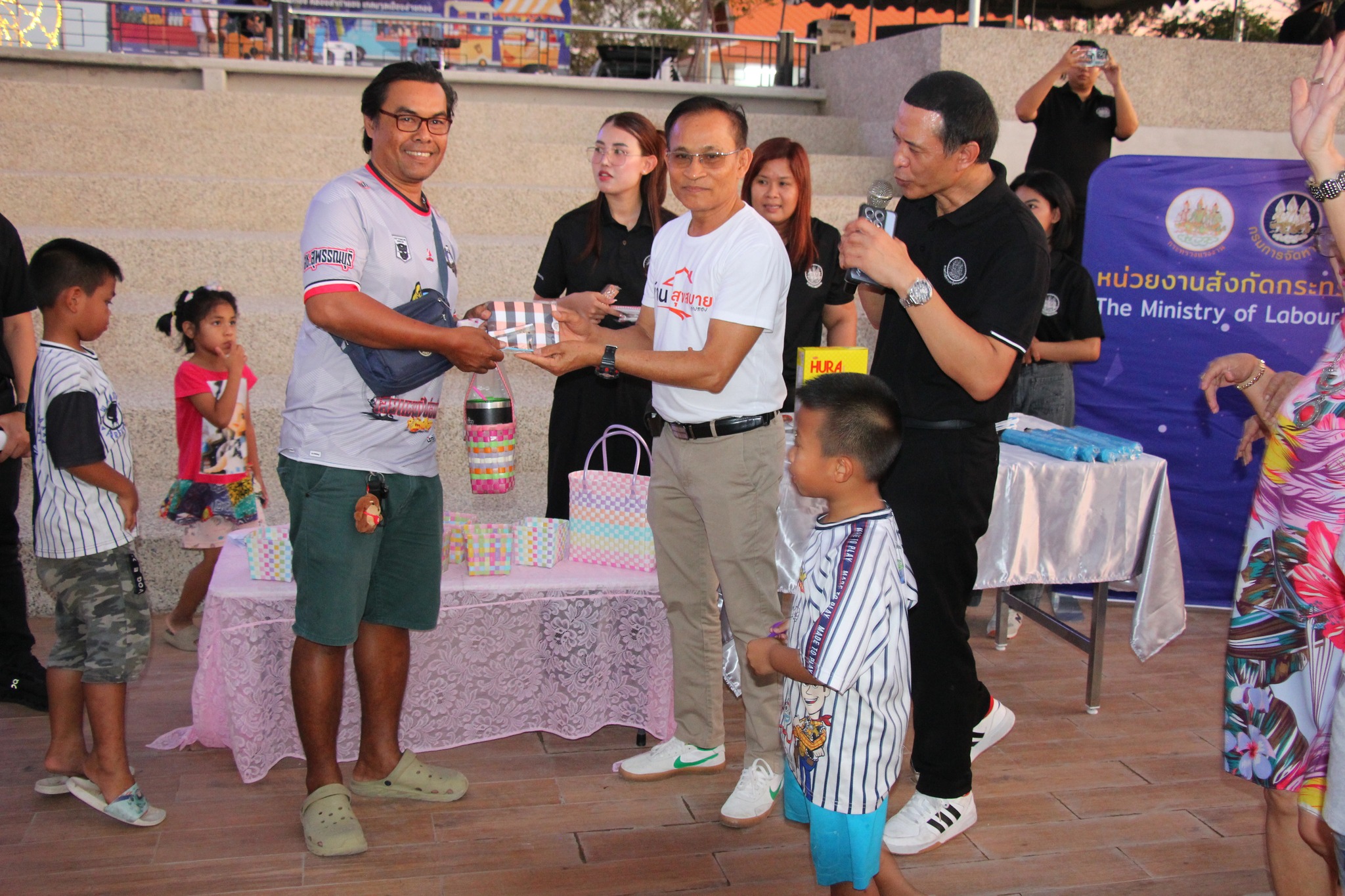 วันเสาร์ที่ 28 กุมภาพันธ์ 2569 เวลา 17.00 น.นายเตือนใจ ทรงไตร นายกเทศมนตรีเมืองอ่างทอง มอบหมายให้นายทนงศักดิ์ ศรีวิเชียร รองนายกเทศมนตรีเมืองอ่างทอง พร้อมคณะผู้บริหาร สมาชิกสภาเทศบาล และบุคลากรในสังกัด ร่วมให้การต้อนรับนายไพบูลย์ ศุภบุญ รองผู้ว่าราชการจังหวัดอ่างทอง และนายภราดร ปริศนานันทกุล รัฐมนตรีประจำสำนักนายกรัฐมนตรี ที่ได้เยี่ยมชมร้านค้าพร้อมให้กำลังใจพ่อค้า แม่ค้า ภายใน"ถนนคนเดินอ่างทอง คลองลำท่าแดง"ก่อนจะเดินทางกลับ ทั้งนี้ได้รับเกียรติจากนายไพบูลย์ ศุภบุญ รองผู้ว่าราชการจังหวัดอ่างทอง ขับร้องบทเพลงดนตรีโฟล์คซอง พร้อมให้เกียรติแจกของรางวัลกับผู้ร่วมเดิน"ถนนคนเดินอ่างทอง คลองลำท่าแดง"โดยสำนักงานแรงงานจังหวัดอ่างทอง เตรียมกิจกรรมพร้อมของรางวัลมาแจกเป็นจำนวนมาก