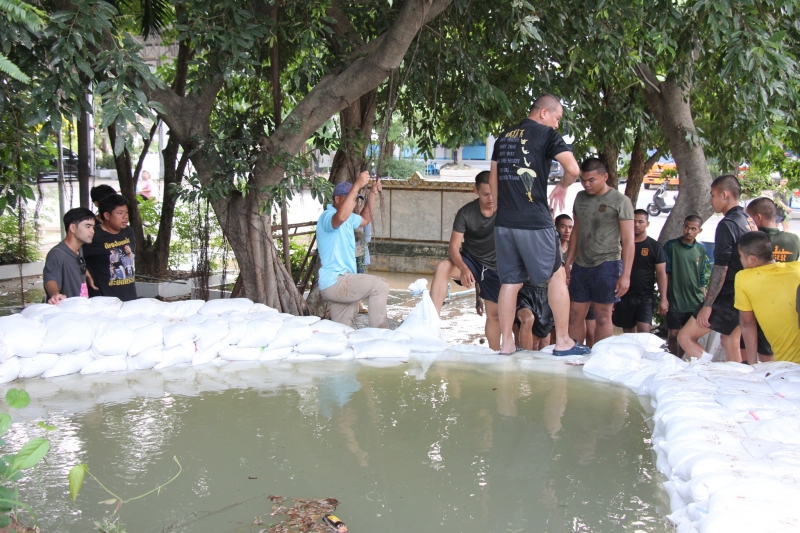 นายเตือนใจ ทรงไตร นายกเทศมนตรีเมืองอ่างทอง พร้อมสมาชิกสภาเทศบาลและบุคลากรในสังกัด ลงพื้นที่เร่งด่วนเนื่องจากบริเวณจุดที่น้ำดันขึ้นจากพื้นในวัดต้นสน และได้วางแนวกระสอบทรายป้องกันใว้เมื่อช่วงบ่ายที่ผ่านมา เกิดพังทลายจากการที่น้ำได้ดันแนวกระสอบทรายที่วางใว้ ทั้งนี้ ได้วางแผนการวางกระสอบทรายใหม่โดยกำชับเวรยามออกตรวจตราและรายงานเป็นระยะเพื่อติดตามสถานณ์การและป้องกันได้ทันทีหากเกิดแนวป้องกันพังทลายซ้ำอีก ณ วัดต้นสน จังหวัดอ่างทอง