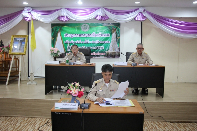 นายเตือนใจ ทรงไตร นายกเทศมนตรีเมืองอ่างทอง พร้อมคณะผู้บริหาร สมาชิกสภาเทศบาล และบุคลากรในสังกัด เข้าร่วมการประชุมสภาเทศบาลเมืองอ่างทอง สมัยสามัญ สมัยที่ 4 ครั้งที่ 1 ประจำปี พ.ศ. 2568 ณ ห้องประชุมสภาเทศบาลเมืองอ่างทอง (ชั้น3)
