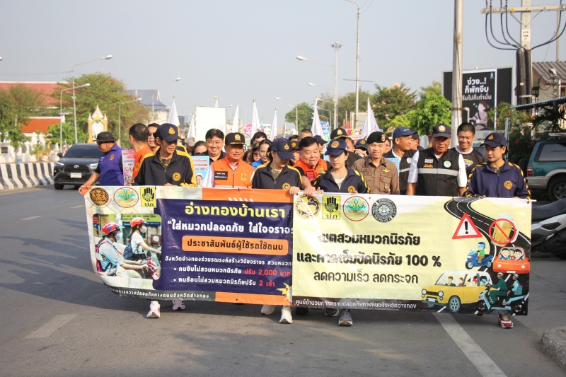 กิจกรรมดังกล่าว เพื่อกระตุ้นเตือน สร้างความตระหนักให้มีจิตสำนึกรักความปลอดภัยแก่ผู้ใช้ถนน ทุกเพศ ทุกวัย และผู้ขับขี่ยานพาหนะทุกประเภท โดยจังหวัดอ่างทองจะเริ่มมาตรการจับจริง-ปรับจริง ตั้งแต่วันที่ 15 กุมภาพันธ์ 2569 เป็นต้นไป