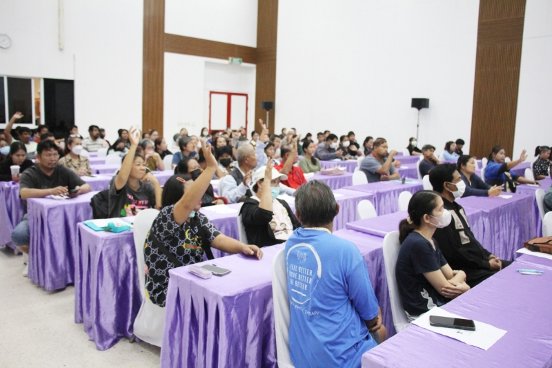 เพื่อรับทราบระเบียบในการจำหน่ายสินค้าฯ รวมถึงสิ่งอำนวยความสะดวกที่เทศบาลเมืองอ่างทองจะมีให้บริการ และสิ่งที่ผู้ประกอบการร้านค้าฯจะต้องจัดหามาด้วยตนเอง สำหรับบริการประชาชนที่มาเดิน ชม ชิม ช้อป ภายในงาน จากนั้นได้กำหนดให้ผู้ประกอบการร้านค้าฯจับสลากเพื่อกำหนดล็อกค้าขาย และตรวจสอบสถานที่จริง