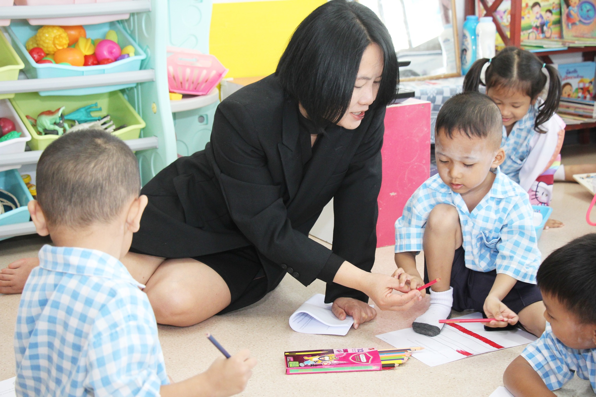 ในการลงพื้นที่ได้ตรวจเยี่ยมห้องเรียนต่างๆ พร้อมให้คำแนะนำเป็นแนวทางให้ผู้บริหารนำไปเพิ่มเติมในส่วนต่างๆของศูนย์ฯเพื่อส่งเสริมพัฒนาการของเด็กๆที่กำลังอยู่ในวัยแห่งการเรียนรู้ การเล่น การจินตนาการ และการเข้าสังคม