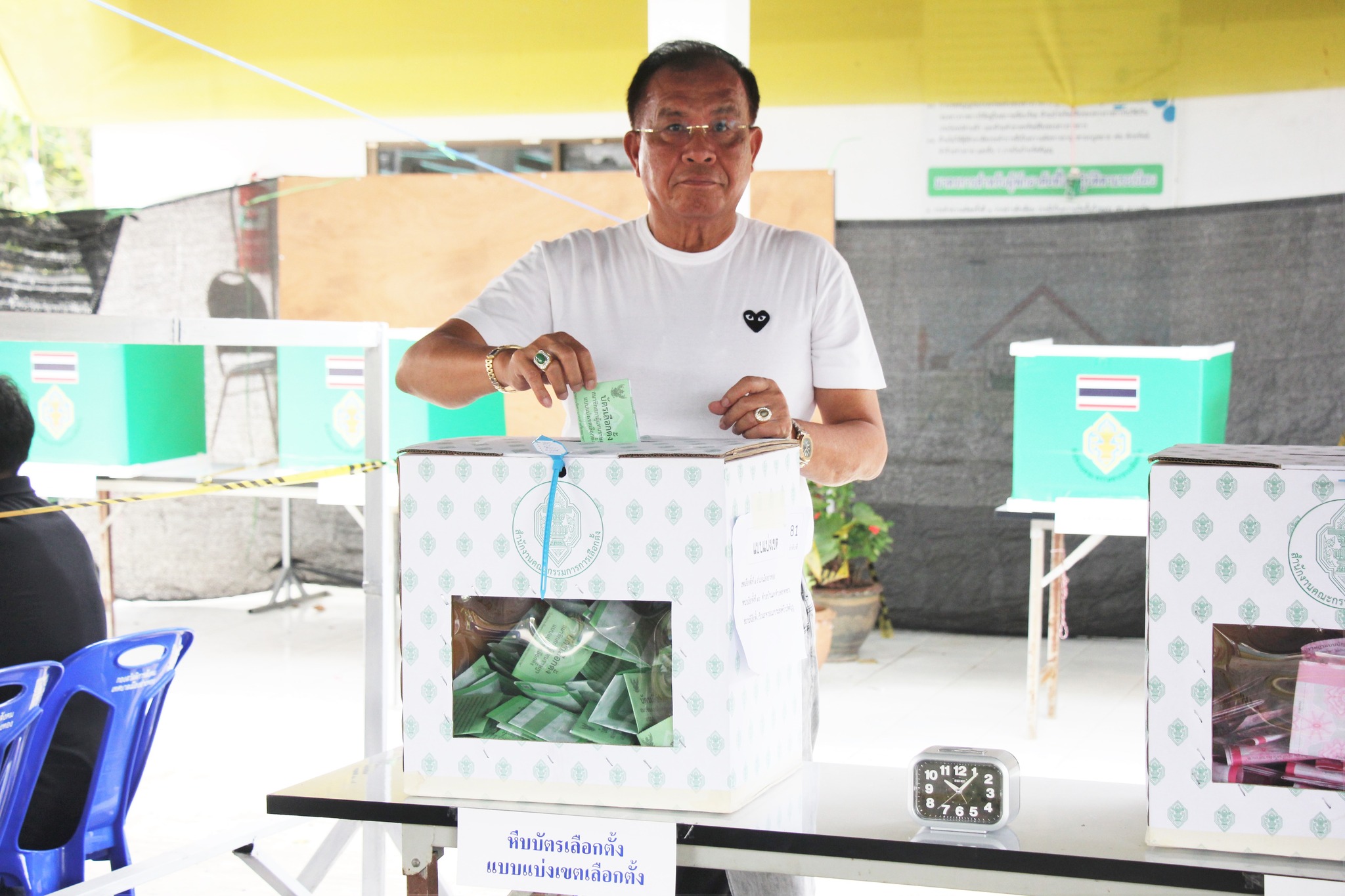 นายกเทศมนตรีเมืองอ่างทอง พร้อมรองนายกเทศมนตรีเมืองอ่างทอง ออกไปใช้สิทธิเลือกตั้ง ส.ส. และออกเสียงประชามติตามสิทธิและหน้าที่พลเมืองไทย