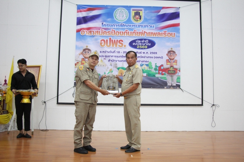 วันพุธที่ 18 กุมภาพันธ์ 2569 เวลา 9.00 น. นายเตือนใจ ทรงไตร นายกเทศมนตรีเมืองอ่างทอง พร้อมคณะผู้บริหาร ปลัดเทศบาล สมาชิกสภาเทศบาล และบุคลากรในสังกัด เข้าร่วมพิธีเปิดโครงการฝึกอบรมทบทวนอาสาสมัครป้องกันภัยฝ่ายพลเรือน(อปพร.)ประจำปีงบประมาณ พ.ศ.2569 จำนวน 60 คน ในระหว่างวันที่ 18-20 กุมภาพันธ์ 2569 โดยมีนายเตือนใจ ทรงไตร นายกเทศมนตรีเมืองอ่างทอง เป็นประธานในพิธี ณ อาคารขุมทรัพย์ความรู้จังหวัดอ่างทอง(AKAP)