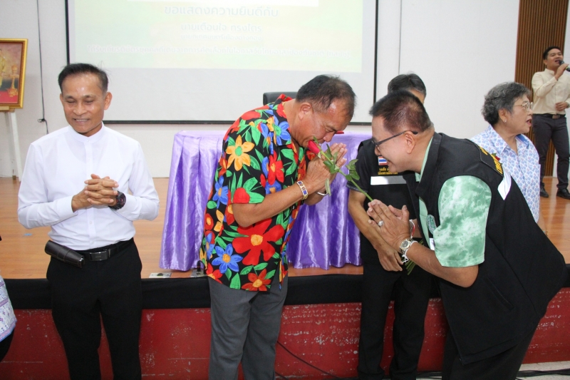 ทั้งนี้ ปลัดเทศบาล ผู้อำนวยการกอง สมาชิกสภาเทศบาล และนักเรียนผู้สูงอายุ ได้ร่วมแสดงความยินดีกับนายเตือนใจ ทรงไตร นายกเทศมนตรีเมืองอ่างทอง ที่ได้รับมอบเกียรติบัตรบุคคลดีเด่นจากการคัดเลือกในโอกาสวันไทยอาสาป้องกันชาติ(ทสปช.)
