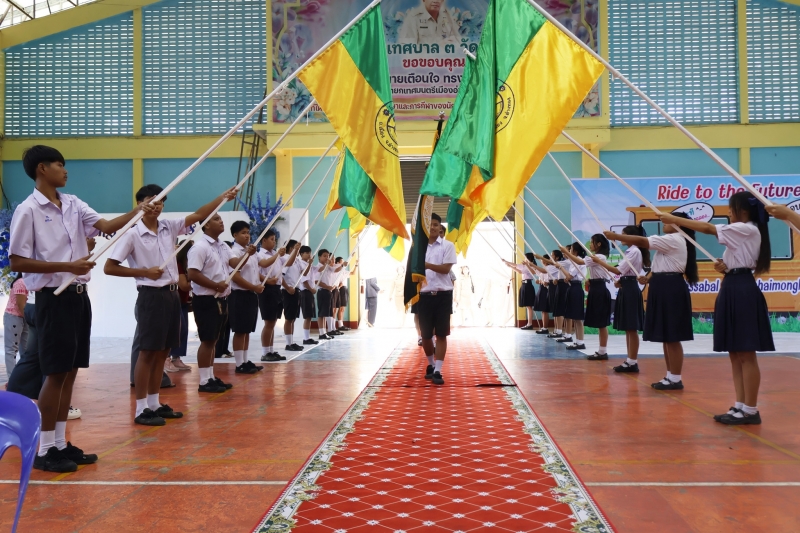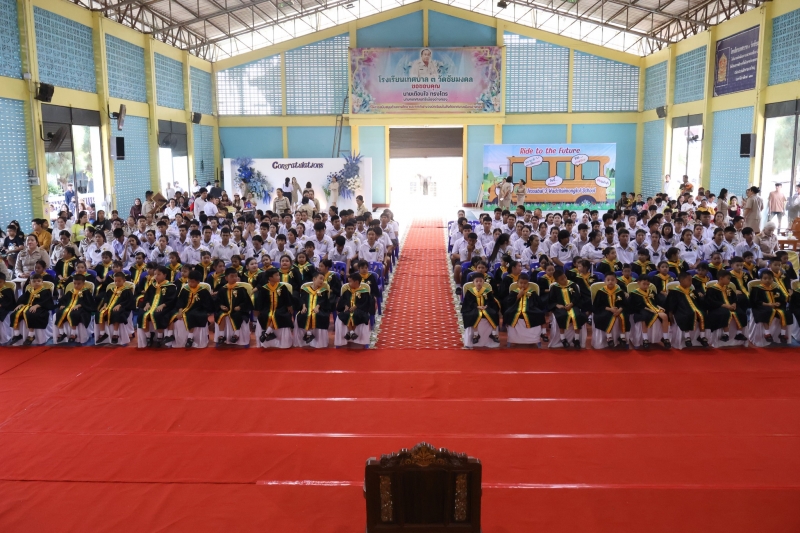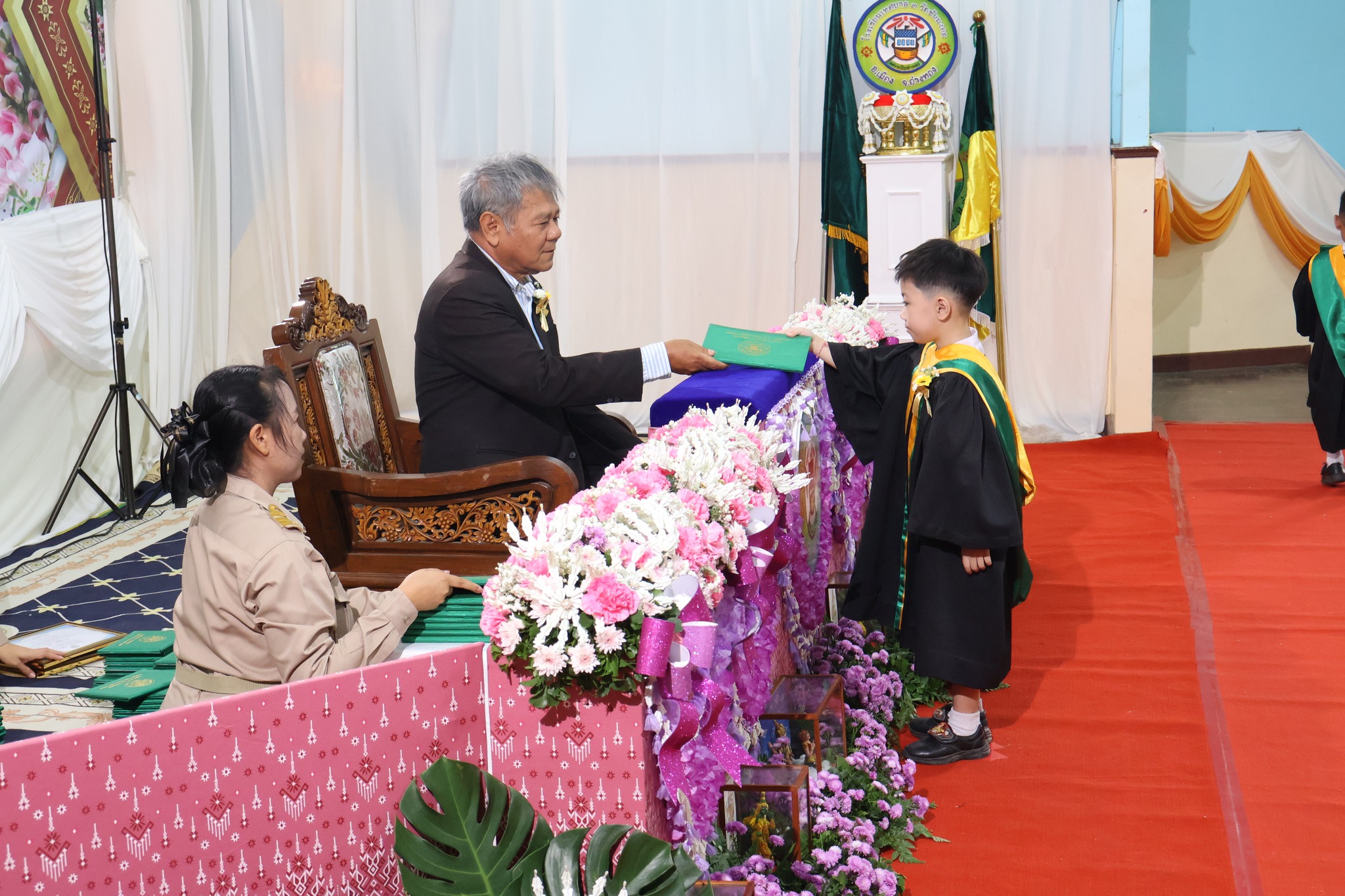 ทั้งนี้นายประมวล มุ่งมาตร รองนายกเทศมนตรีเมืองอ่างทอง ได้กล่าวแสดงความยินดี พร้อมให้โอวาทและข้อคิดเพื่อสร้างขวัญกำลังใจ ในการดำเนินชีวิตแก่นักเรียนที่สำเร็จการศึกษา