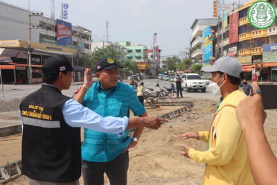 นายเตือนใจ ทรงไตร นายกเทศมนตรีเมืองอ่างทอง พร้อมด้วยคณะผู้บริหาร และบุคลากรในสังกัด ลงพื้นที่ตรวจสอบความคืบหน้า ตามโครงการปรับปรุงระบบการจราจรและปรับปรุงภูมิทัศน์บริเวณสี่แยกไฟแดงอ่างทอง ณ แยกวงเวียนอ่างทอง