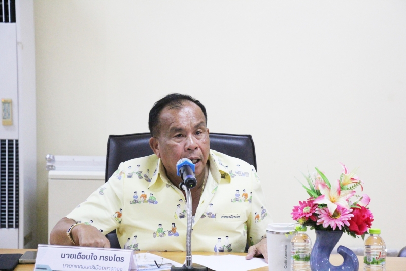 นายเตือนใจ ทรงไตร นายกเทศมนตรีเมืองอ่างทอง พร้อมคณะผู้บริหาร และบุคลากรในสังกัด เข้าร่วมประชุมการติดตามสถานการณ์น้ำปัจจุบัน ร่วมกับ พล.ต.ต.กิตติ สกุณี ผบก.ภ.จวอ่างทอง และเจ้าหน้าที่ตำรวจ สภ.เมืองอ่างทอง สนง.ปภ. จังหวัดอ่างทอง โครงการชลประทานอ่างทอง และสนง.โยธาธิการและผังเมืองจังหวัดอ่างทอง เนื่องด้วยอัตราการระบายน้ำจากเขื่อนเจ้าพระยา รวมทั้งแผนป้องกันและแก้ไขสภาวะน้ำท่วมในเขตเทศบาลเมืองอ่างทอง อีกทั้งจุดเสี่ยงที่อาจเกิดน้ำท่วมที่ได้เตรียมการใว้ก่อนหน้าแล้ว ทั้งนี้การจราจรได้ขอความอนุเคราะห์ให้ทางเจ้าหน้าที่ตำรวจคอยอำนวยความสะดวกและตรวจตราจุดที่มีการวางกระสอบทรายป้องกันน้ำท่วม ณ ห้องประชุมเทศบาลเมืองอ่างทอง(ชั้น3)