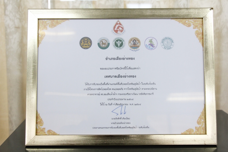 2.ได้รับประกาศนียบัตรรับรองพื้นที่ปลอดโรคพิษสุนัขบ้า ระดับท้องถิ่น