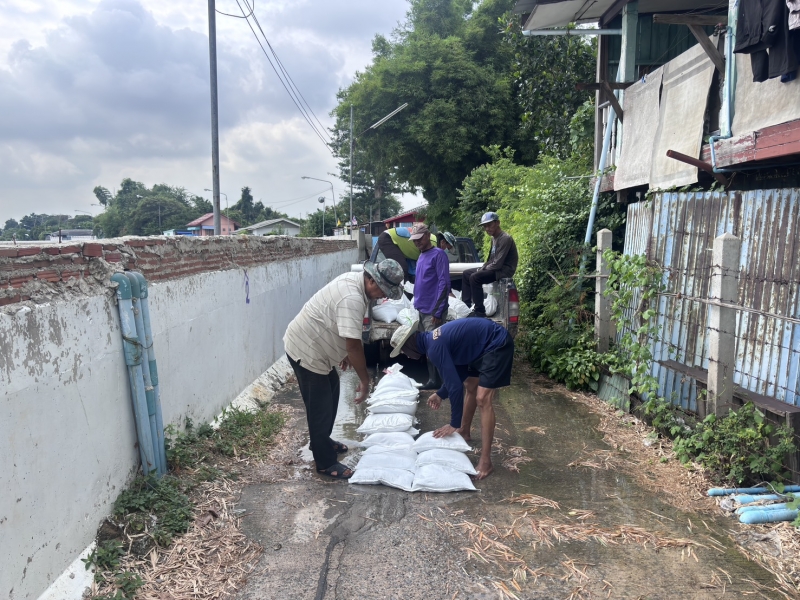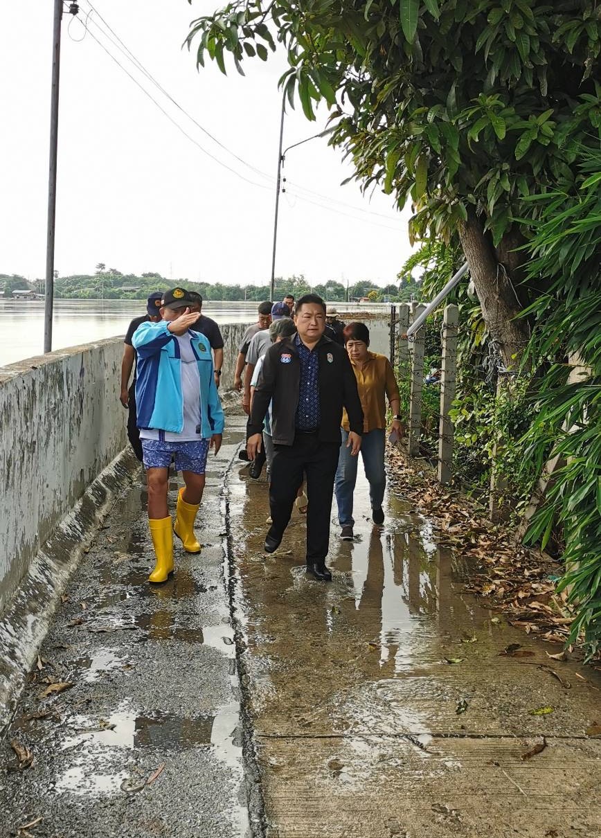 นายเตือนใจ ทรงไตร นายกเทศมนตรีเมืองอ่างทอง คณะผู้บริหาร สมาชิกสภาเทศบาล และบุคลากรในสังกัด ลงพื้นทีพร้อมด้วยนายชวนินทร์ วงศ์สถิตจิรกาล ผู้ตรวจราชการกระทรวงมหาดไทย รักษาการในตำแหน่งผู้ว่าราชการจังหวัดอ่างทอง และหน่วยงานที่เกี่ยวข้อง ตรวจสอบบริเวณจุดน้ำรั่วซึม ที่ได้รับการรับแจ้งว่ามีจุดที่น้ำได้เข้าท่วมบ้านเรือนประชาชน จากการตรวจสอบ แนวป้องกันตั้งแต่วัดอ่างทองวรวิหารจนถึงโค้งปลาทูเกิดการรั่วซึม เลยสั่งการให้วางกระสอบทรายและแบริเออร์เพิ่มเติมเพื่อป้องกันอุทกภัย ณ บริเวณโค้งปลาทูวัดอ่างทองวรวิหาร