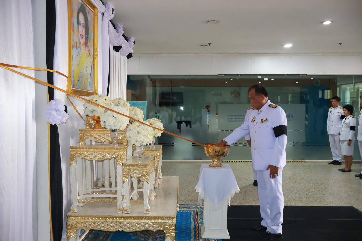 นายเตือนใจ ทรงไตร นายกเทศมนตรีเมืองอ่างทอง พร้อมสมาชิกสภาเทศบาลและบุคลากรในสังกัด เข้าร่วมพิธีถวายน้ำสรงพระบรมศพหน้าพระฉายาลักษณ์สมเด็จพระนางเจ้าสิริกิติ์ พระบรมราชินีนาถ พระบรมราชชนนีพันปีหลวง และลงนามแสดงความไว้อาลัย นายชวนินทร์ วงศ์สถิตจิรกาล ผู้ตรวจราชการกระทรวงมหาดไทย รักษาการในตำแหน่งผู้ว่าราชการจังหวัดอ่างทอง เป็นประธาน ณ โถงศาลากลางจังหวัดอ่างทอง (หลังใหม่)