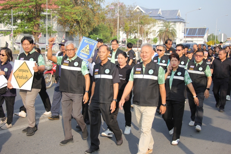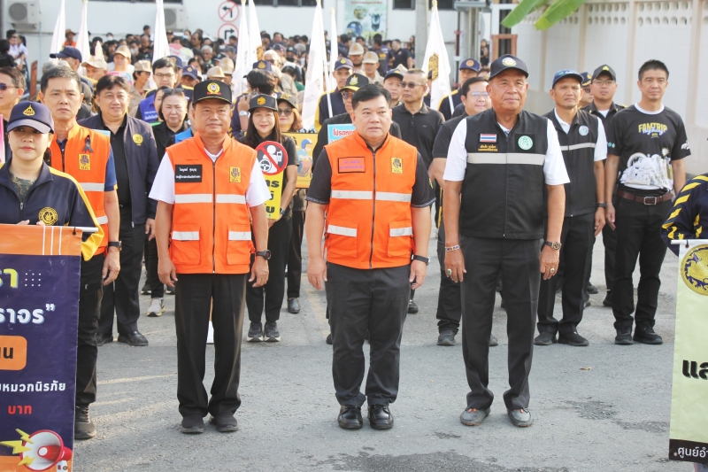 นายเตือนใจ ทรงไตร นายกเทศมนตรีเมืองอ่างทอง พร้อมสมาชิกสภาเทศบาล บุคลากรในสังกัด และอาสาสมัครป้องกันภัยฝ่ายพลเรือนเทศบาลเมืองอ่างทอง เข้าร่วมกิจกรรมเนื่องในวันความปลอดภัยของผู้ใช้ถนน พ.ศ. 2569 และกิจกรรม Kick off การสวมหมวกนิรภัย 100%