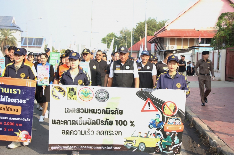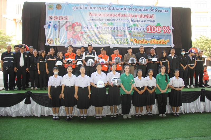 กิจกรรมดังกล่าว เพื่อกระตุ้นเตือน สร้างความตระหนักให้มีจิตสำนึกรักความปลอดภัยแก่ผู้ใช้ถนน ทุกเพศ ทุกวัย และผู้ขับขี่ยานพาหนะทุกประเภท โดยจังหวัดอ่างทองจะเริ่มมาตรการจับจริง-ปรับจริง ตั้งแต่วันที่ 15 กุมภาพันธ์ 2569 เป็นต้นไป