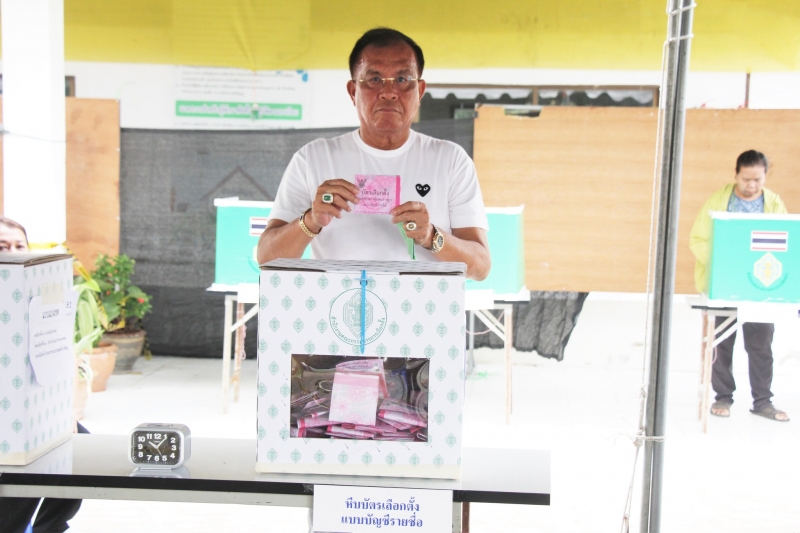 นายกเทศมนตรีเมืองอ่างทอง พร้อมรองนายกเทศมนตรีเมืองอ่างทอง ออกไปใช้สิทธิเลือกตั้ง ส.ส. และออกเสียงประชามติตามสิทธิและหน้าที่พลเมืองไทย