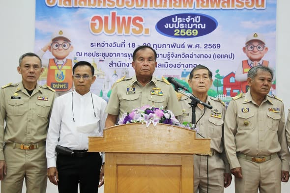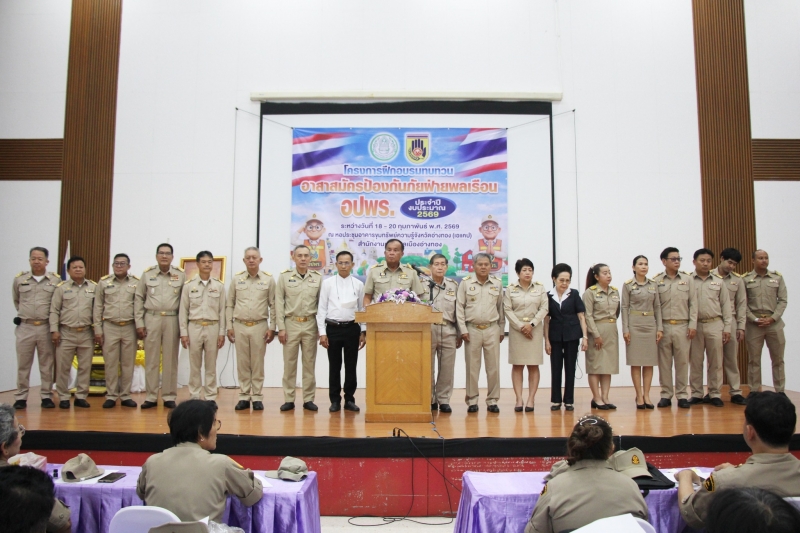 วันพุธที่ 18 กุมภาพันธ์ 2569 เวลา 9.00 น. นายเตือนใจ ทรงไตร นายกเทศมนตรีเมืองอ่างทอง พร้อมคณะผู้บริหาร ปลัดเทศบาล สมาชิกสภาเทศบาล และบุคลากรในสังกัด เข้าร่วมพิธีเปิดโครงการฝึกอบรมทบทวนอาสาสมัครป้องกันภัยฝ่ายพลเรือน(อปพร.)ประจำปีงบประมาณ พ.ศ.2569 จำนวน 60 คน ในระหว่างวันที่ 18-20 กุมภาพันธ์ 2569 โดยมีนายเตือนใจ ทรงไตร นายกเทศมนตรีเมืองอ่างทอง เป็นประธานในพิธี ณ อาคารขุมทรัพย์ความรู้จังหวัดอ่างทอง(AKAP)