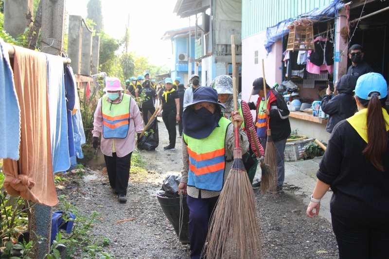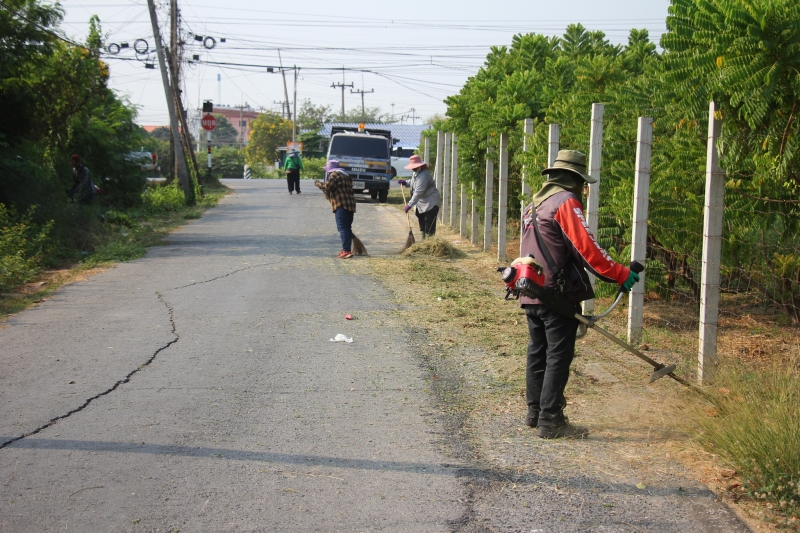รองนายกเทศมนตรีเมืองอ่างทอง นำบุคลากรและประชาชนทำความสะอาดปรับปรุงภูมิทัศน์ให้สวยงาม โครงการจิตอาสาอ่างทองเมืองสะอาด