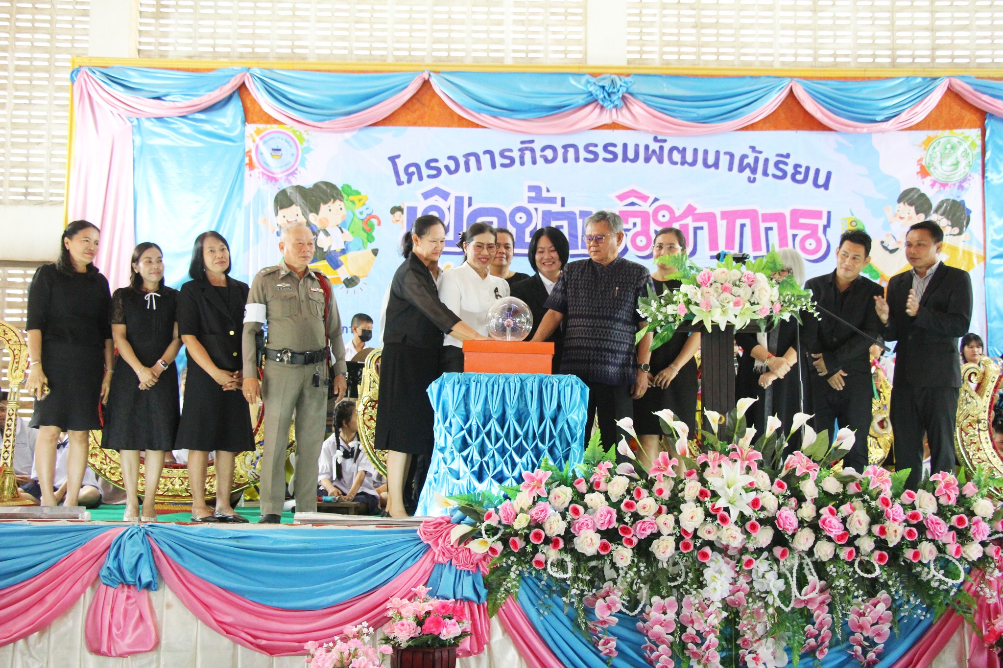 โดยได้รับเกียรติจากหน่วยงานต่างๆที่เข้าร่วมในพิธีเปิด ซึ่งนักเรียนโรงเรียนเทศบาล 1 วัดต้นสน ยกเอกลักษณ์ความเป็นจังหวัดอ่างทอง โดยทำการแสดงออกแขกลิเก พร้อมวงปี่พาทย์ เป็นการต้อนรับแขกผู้ทรงเกียรติ สร้างความประทับใจทุกท่านภายในงาน