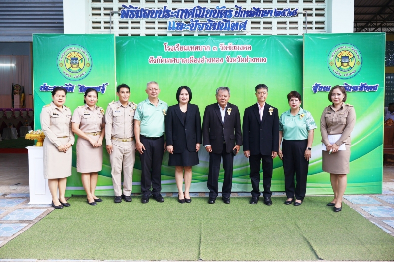 วันจันทร์ที่ 30 มีนาคม 2569 เวลา9.00 น. นายเตือนใจ ทรงไตร นายกเทศมนตรีเมืองอ่างทอง มอบหมายให้นายประมวล มุ่งมาตร รองนายกเทศมนตรีเมืองอ่างทอง พร้อมปลัดเทศบาลเมืองอ่างทอง รองปลัดเทศบาลเมืองอ่างทอง คณะกรรมการสถานศึกษา และบุคลากรในสังกัด ร่วมพิธีเปิด"โครงการปัจฉิมนิเทศ"ประจำปีการศึกษา 2568 และมอบวุฒิบัตรผู้สำเร็จการศึกษา ประจำปีการศึกษา 2568 ณ อาคารอเนกประสงค์ โรงเรียนเทศบาล 3 วัดชัยมงคล โดยมีนายประมวล มุ่งมาตร รองนายกเทศมนตรีเมืองอ่างทอง เป็นประธานในพิธี