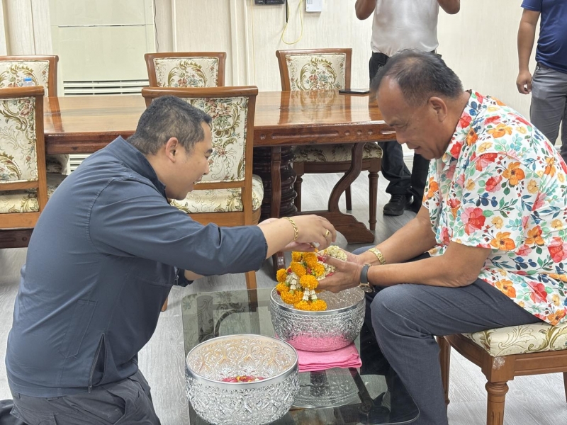 พ.ต.ท.บรรพต แก้วตา สารวัตรตรวจคนเข้าเมืองจังหวัดอ่างทอง พร้อมคณะและบุคลากรในสังกัด เข้ารดน้ำขอพรนายเตือนใจ ทรงไตร นายกเทศมนตรีเมืองอ่างทอง ณ สำนักงานเทศบาลเมืองอ่างทอง