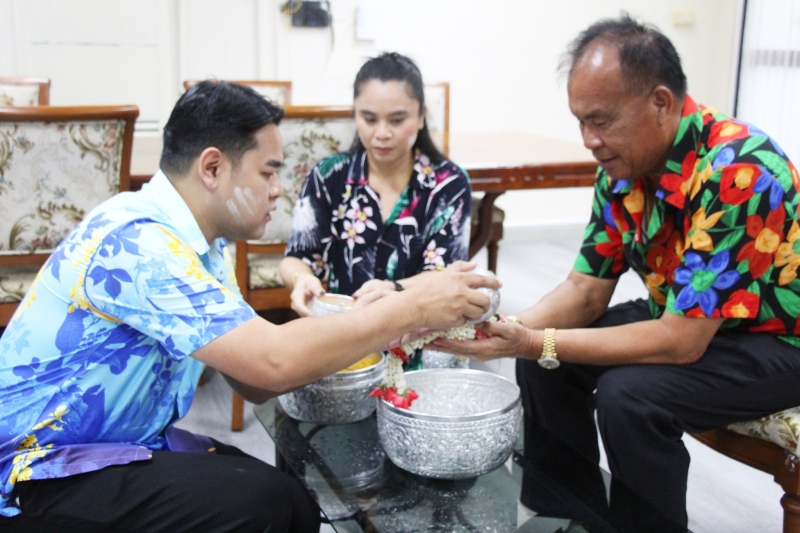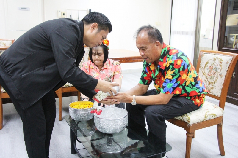 นายธรรมสรณ์ สุศิริ ผู้อำนวยการโรงเรียนสตรีอ่างทอง พร้อมด้วยบุคลากรในสังกัด เข้าร่วมรดน้ำขอพร นายเตือนใจ ทรงไตร นายกเทศมนตรีเมืองอ่างทอง เนื่องในประเพณีวันสงกรานต์ ประจำปี 2569 ณ สำนักงานเทศบาลเมืองอ่างทอง